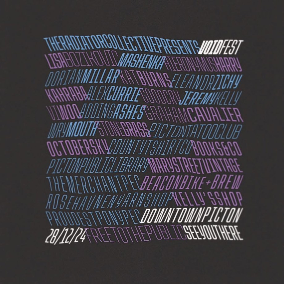 The idea for Void Fest came about from wanting to celebrate our town, Picton Ontario, along with the people creating and living in it. To give people who may not have the luxury of being a full time working artist or musician the time and attention to grow and learn in a safe environment. The idea of having 15 acts perform over 12 venues in one day in December might have seemed lofty, but we thought why not just do it for the sake of doing it. Pushing the envelope and offering an eclectic mix of emerging and veteran performers a platform to present their work in a live setting is an honour.